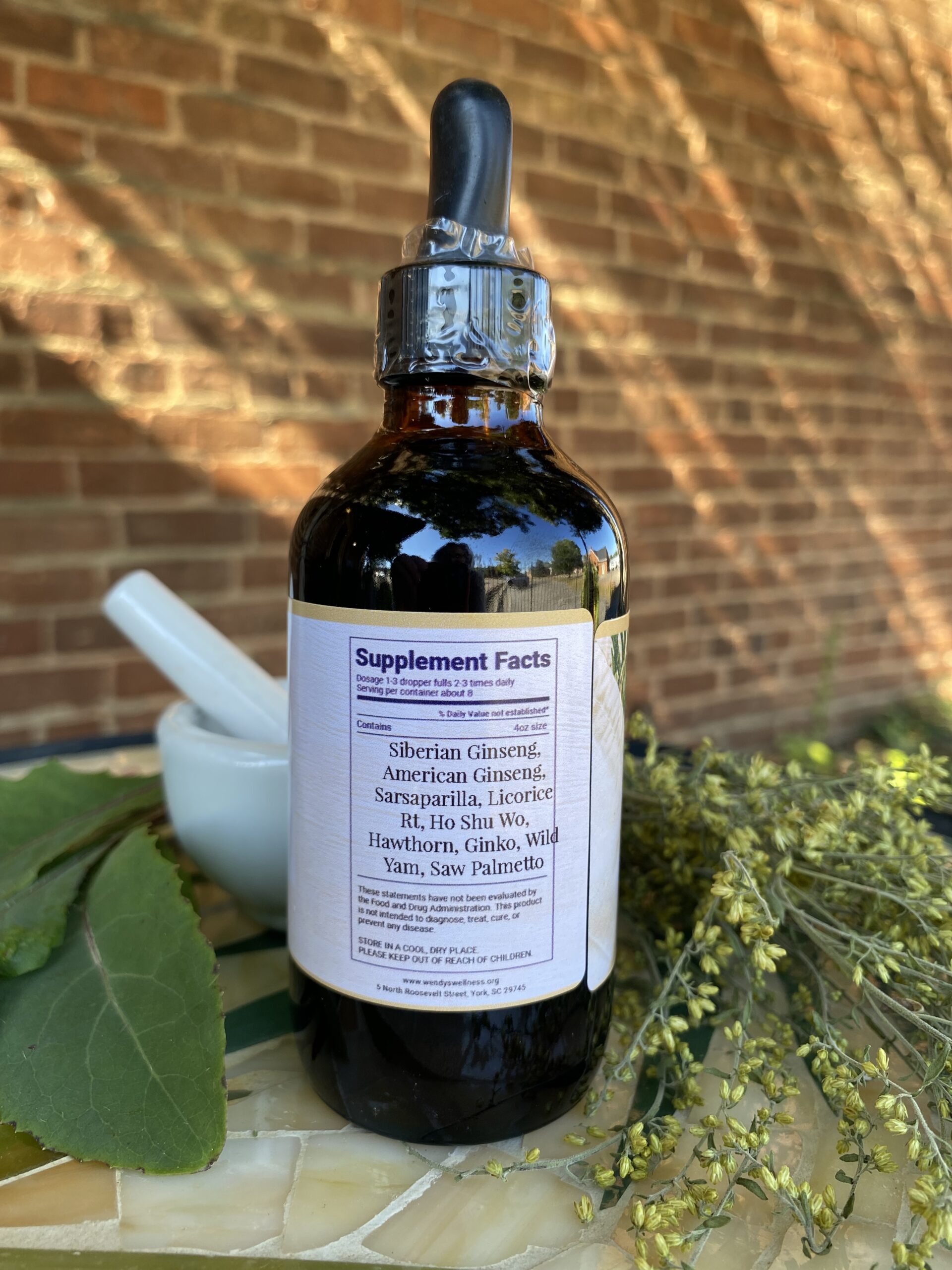 Here is one exclusively for the male to support the glandular system, help the body deal with stress, calm the nerves and support the heart. Specific herbs chosen for their historical properties of promoting long life.